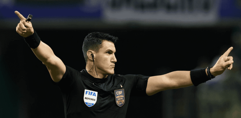 Árbitro gaúcho de 35 anos (28/03/1990), entrou para o quadro internacional em 2024, após boas atuações na série A do Campeonato Brasileiro de 2023. Considerando o jogo desta noite no Allianz Parque, foi o 16º na atual temporada deste campeonato, mostrando 70 cartões amarelos e dois vermelhos diretos, assinalando uma penalidade máxima.
