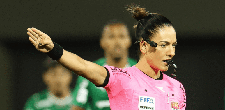 Árbitra de 37 anos (25/05/1988) de Três Lagoas, FIFA desde 2025, promovida a internacional como árbitro de vídeo VAR. Este ano foi escalada como arbitra central em cinco oportunidades, incluindo o jogo desta noite de domingo em Barueri.