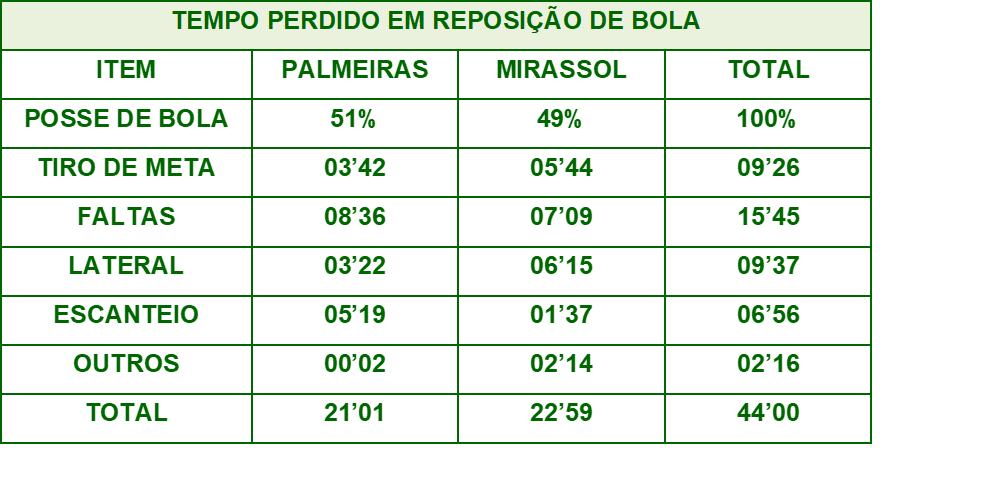 Acresceu três minutos no primeiro tempo e cinco no segundo tempo. Considerando que tivemos parada para hidratação, tanto no primeiro como no segundo tempo foi um reposição abaixo do esperado.