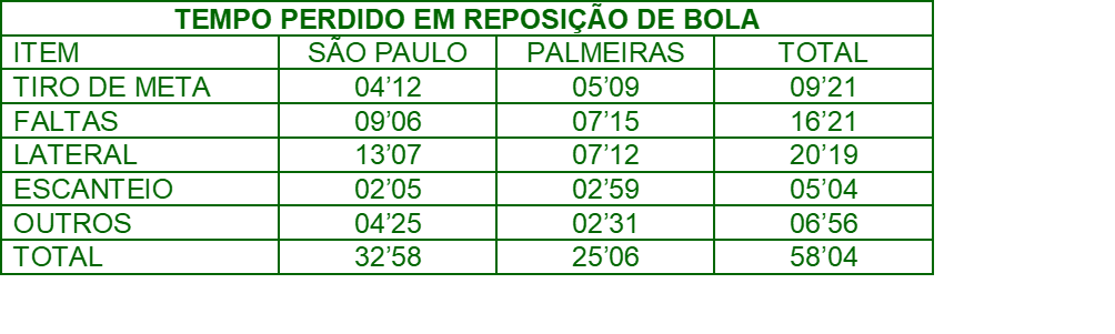 No segundo tempo foram sete minutos acrescidos, porém, com a falta acima aludida, levou o jogo até oito minutos. O tempo acrescido foi econômico, devido aos retardamentos de reposição de bola em jogo praticado pela equipe mandante.