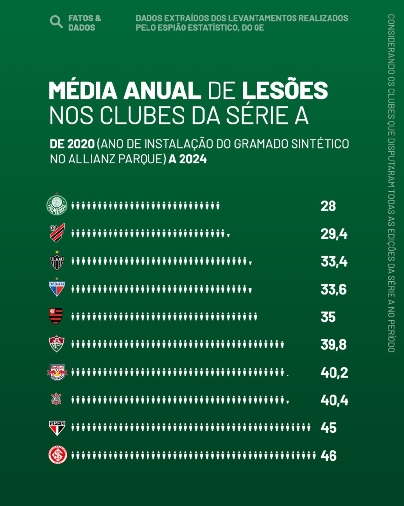 Especialistas já foram categóricos ao afirmar que não há evidências destes malefícios. Ao contrário. A SEP publicou recentemente fatos comprovanto que o Palmeiras é o clube no Brasil com menor número de lesões em seus jogadores.