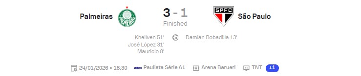 Com quatro vitórias em cinco jogos, o Palmeiras passa a noite na liderança do Paulista 2026. E aguarda o resultado do RBB contra o Santos. De qualquer forma a classificação para o mata-mata das quartas está praticamente garantida.
